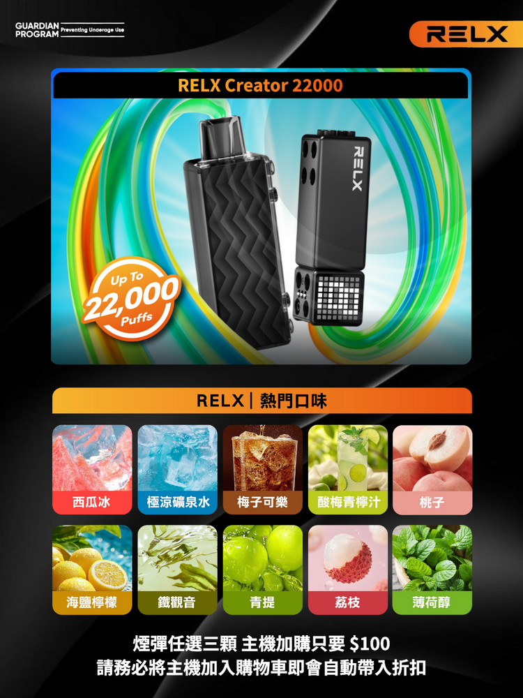 悅刻積木 RELX Creator 22000 主機|22,000口續航+SilkMesh科技|Rivon Vape